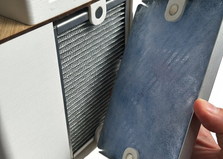 Lüften1 uses high-performance MERV 7 filters on both the intake and exhaust sides to keep your air and the unit clean. These filters capture dust, pollen, and fine particles that typical window fans or vents let through.