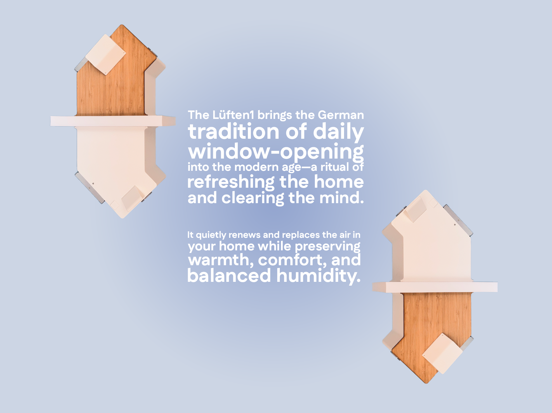 Lüften1’s intelligent control system automatically balances airflow for comfort, efficiency, and safety. It continuously monitors temperature and humidity to prevent condensation inside the heat exchanger.